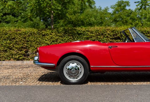 Based on the Bertone-bodied Sprint, the spider used a variant of Alfa Romeo’s 1.3-litre four-cylinder engine, which produced 74 horsepower. Weighing in at 860kg, the spider was 55kg lighter than its coupé sibling, which meant improvements in performance and resulting in a top speed of close to 100 mph.