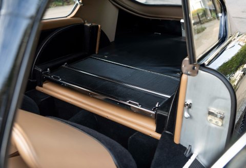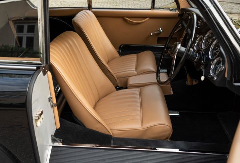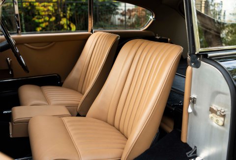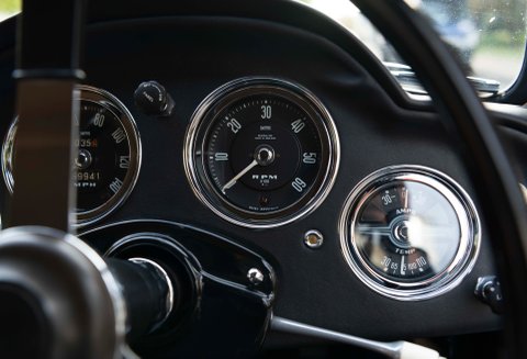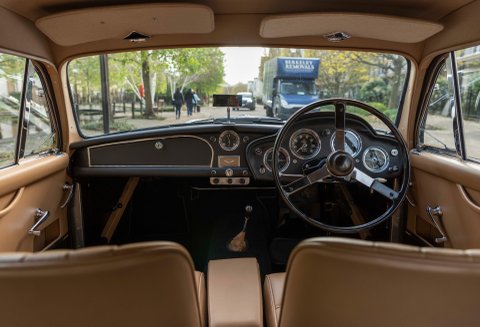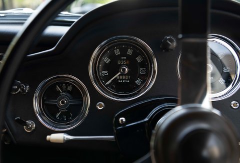 The car truly typifies the beauty that makes the Mark III such a desirable model. Despite being far from the first Aston Martin model produced in their long history, it’s probably one of the earliest models that Joe Bloggs on the street would think was an Aston Martin. The most distinguishing feature is the iconic Aston Martin grille, replacing the taller, squarer grille of the DB2. It also featured a dashboard layout which would be continued by all subsequent Aston Martin models until the DBS, the detail of particular note being the instrument binnacle that was shaped to mirror the grille. The car’s tail was also partially redesigned, with modifications made to the subtle tailfins along with new Cathedral taillight units which replaced the previous triangular units that formed the end of the fins. These Cathedral lights could be seen on many of the finest British cars of the era, namely coachbuilt Rolls-Royce Silver Clouds, Bentley S-Series Continentals and Alvis cars to name but a few. The fastback shape not only makes it incredibly stylish but also, being a hatchback, incredibly practical for a car of its type. The extensive brightwork on the car stands bold against the gleaming black coachwork.