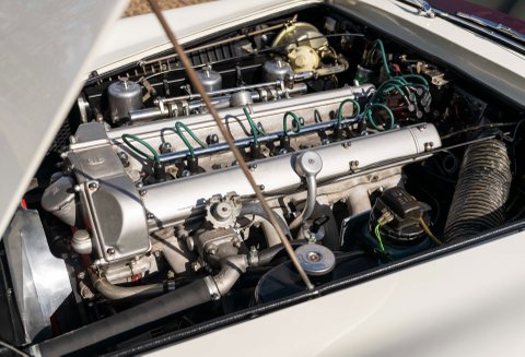 Remove engine from the chassis and power clean. Strip engine, measure components against original specification; thoroughly clean and inspect the engine block checking for corrosion and internal damage, establish serviceability. Rebuild engine block to Works 4.2 litre specification. Carry out unleaded conversion using hardened valve seats without power loss. Install new oil pump, drive chain and timing chains, replace oil cooler and pipes if required. Fit new auxiliary engine fixtures, fittings, mounting brackets as required; re-chroming and plating to a high standard using stainless steel fixings where applicable. Overhaul the ignition distributor installing a modern electronic ignition system for improved reliability and increased performance; replacing spark plug leads and caps. Overhaul fuel lines and carburettors, chemically clean fuel tank and repair as required, replace fuel pump with an electronic version for improved reliability. Overhaul cooling and interior heating radiators carrying out repairs as required; replace all coolant hoses with modern silicone rubber type. Engine will be test bedded prior to installation and a record of power output kept within the Provenance Record. Prepare engine bay with correct fittings and fixtures with new under bonnet wiring harness, in keeping with the period.