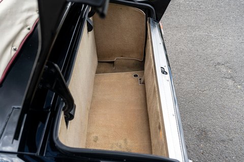 Notable features include the highly desirable glass rear window, which replaced the less durable plastic variant found on earlier cars, and factory air conditioning, a rare but welcome addition that enhances comfort for open-air driving.