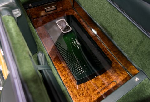 Our car was delivered new to its first owner equipped with many extras including the factory’s V600 package (which added £43,000 to the price of the standard Vantage) and the close-ratio six-speed manual gearbox, making this car one of only four built to that specification. Importantly, its green exterior colour (RM 5235A) is unique to this car, having been specially formulated to the first owners specification. The specification also includes full Green hide seats, burr elm wood veneer (in place of the alloy finish) and a burr elm gear lever knob. Terry Durston was requested to build the engine.