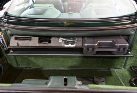 This beautiful brute we present to you today has always been carefully maintained by Aston Martin Works Service and remains an incredibly low mileage car, having covered just 5,800 miles in its lifetime, the car presents as stunningly as you would imagine. Its unique colour combination only boosts the appearance of this car, the one-off Green exterior is perfectly suited to the menacing English coachwork whilst the Green interior and Burr Elm Wood Veneers fully emphasise the sumptuous luxury of the cockpit, making for an exceedingly competitive grand tourer, a seamless balance of comfort and sheer power. It naturally comes with the original tool kit, owners handbooks, original invoice and the V8 Vantage Le Mans booklet, signed by both 1959 Le Mans Winners Roy Salvadori and Carroll Shelby.
