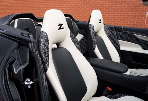 Finished in stunning Ceramic Grey with two-tone black and cream leather.