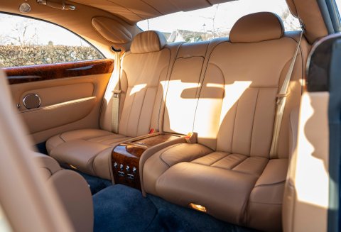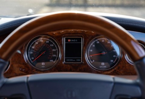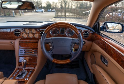 Finished in the timeless colour combination of Windsor Blue metallic coachwork with twin hand-painted coach lines, Autumn Connolly hide with French Blue stitching, matching Wilton carpets and Burr Walnut woodwork. The car also features fully electric, heated and massaging seats, half-wood steering wheel, front and rear parking sensors, Bluetooth and Satellite Navigation. Additionally benefitting with a host of non-standard options including the highly desirable Le Mans series lower side vents, Colour coded radiator shell with steel Matrix grill, Drilled aluminium pedals, Flying ‘B’ radiator mascot and Jewel filler cap to name just a few.