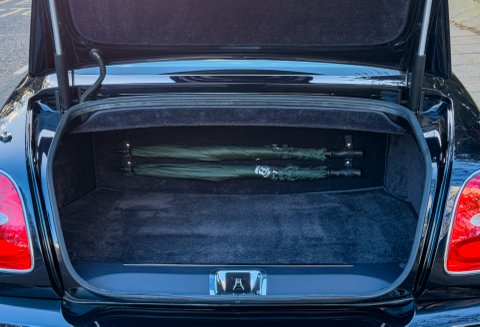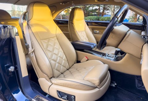 Finished in Special Order Metallic Black Sapphire, this Bentley features Cashew leather upholstery with diamond-quilted seat facings and matching door cards, each embroidered with Bentley Flying B emblems. The carpets and seat belts are colour-matched to the main hide, while the top roll is finished in two-tone leather with contrasting stitching. Dark-stained Burr Walnut veneers add a touch of understated elegance throughout the cabin.