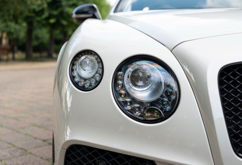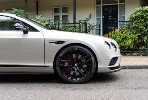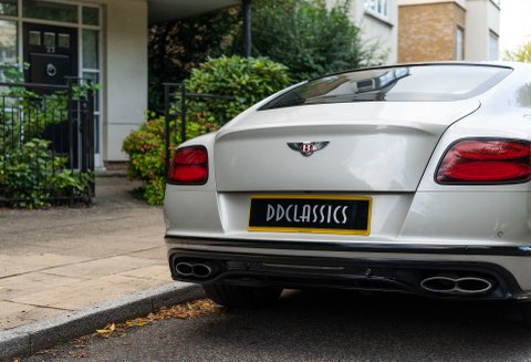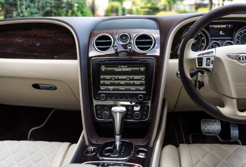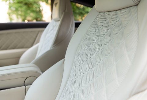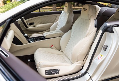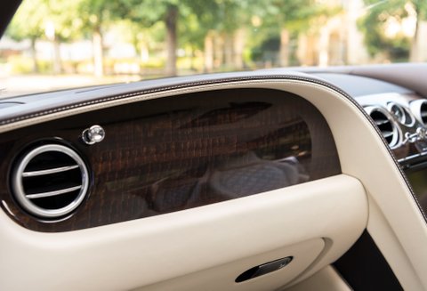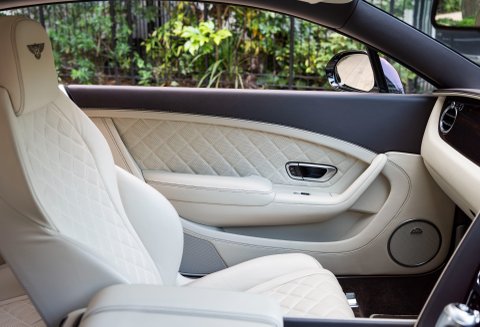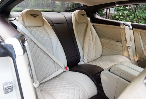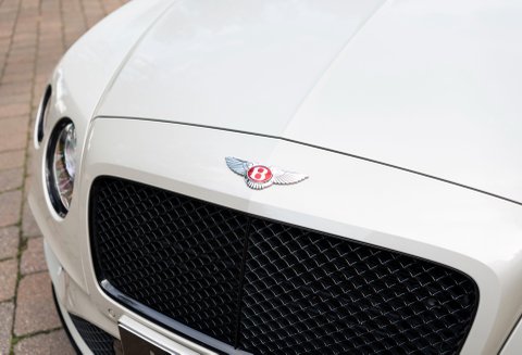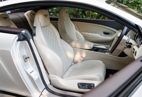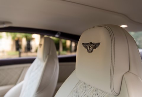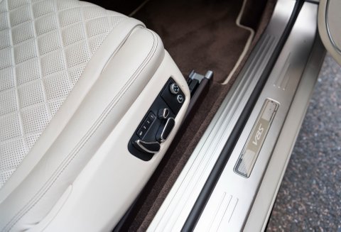 Finished in special order White Sand Metallic coachwork with Quilted Mulliner Linen hide, Burnt Oak two-tone roll, matching carpets bound in Linen hide and Bentley embossed wings.