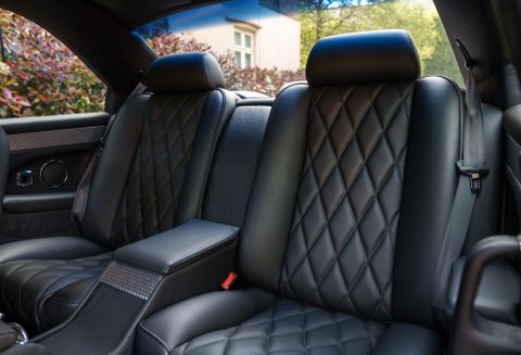 A unique highlight of this Continental T is the turned aluminium dashboard, which adds a sporty yet refined touch to the interior. This detail complements the luxurious appointments throughout the cabin, including hand-stitched leather, rich wood veneers, and plush carpeting, all crafted with Bentley's signature attention to detail.