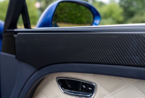 This particular example has been highly optioned and very well cared for. The Sequin Blue paint is rich and deep, especially in natural light, and the interior is a perfect blend of traditional craftsmanship and modern tech. The Imperial Blue seat piping, deep pile Wilton carpets, and optional carbon fibre waistrail inlay give it a bespoke, tailored feel that really sets it apart.