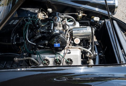 Under the bonnet lies the SP250’s standout feature: Daimler’s 2.5-litre V8 engine, featuring hemispherical combustion chambers. Originally developed for police pursuit vehicles and luxury saloons, this engine gave the lightweight SP250 genuine performance credentials, with lively acceleration and a distinctive exhaust note. Paired with a 4-speed manual gearbox (with optional overdrive available on some examples), it gave the car a spirited driving experience more akin to a small American sports car than a typical British roadster of the period.