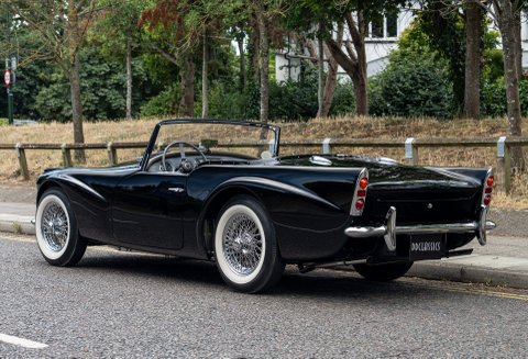 Presented in its original and striking livery of Black over Grey leather with Black piping, this 1961 Daimler SP250 is a finely restored example of one of Britain’s most unusual and engaging postwar sports cars. Benefiting from a photo-documented restoration completed under prior ownership, the car has been thoughtfully brought back to its original specification with a keen eye for accuracy and period detail.