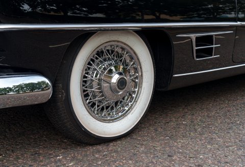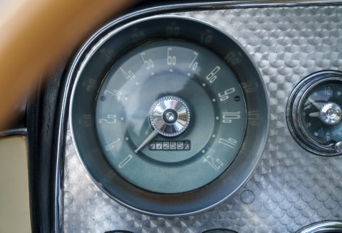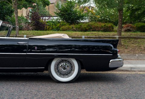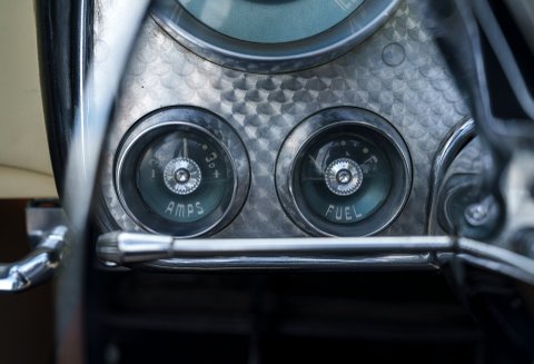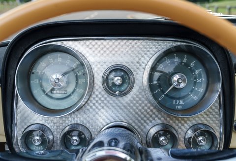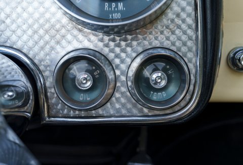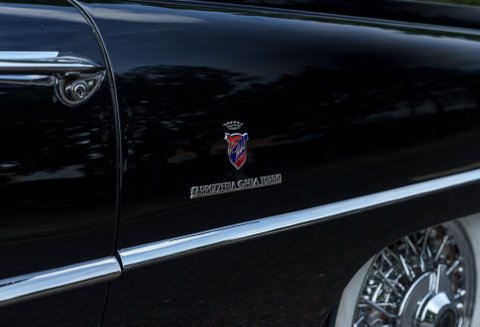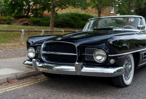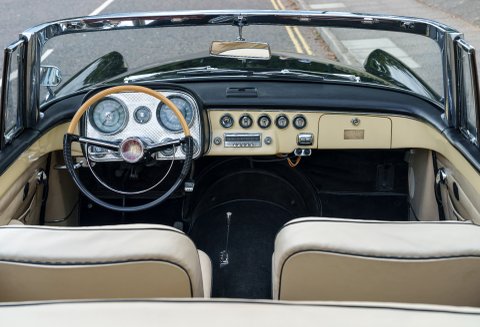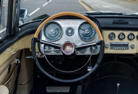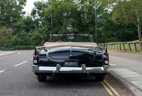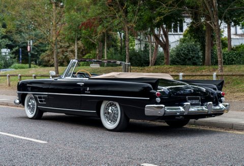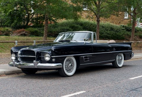 Previously restored and finished in black with a light interior and contrasting convertible top, the car retains important original features including its engine turned instrument panel and original owner dash plaque. Powered by the correct 315 cubic inch Dodge Poly hemi head V8 paired with a two speed automatic transmission, it presents today as a charismatic and highly collectible example of one of the most desirable American Italian collaborations of the 1950s.