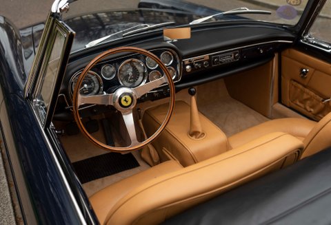 Only recently completed after four years of restoration work at a cost of almost €240,000, chassis 1805 GT is in extraordinary condition throughout and now offered for sale with only 635 miles since its recent restoration. It is presented in its original stunning colour combination of Blu Pozzi over a Pelle leather interior. A true gentleman’s Ferrari, this example would be a prime candidate to be exhibited at international concours, FCA events, or would simply be a wonderful cabriolet for the driving enthusiast looking to experience Ferrari performance and luxury at its finest.