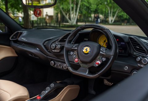 Our elegant Ferrari 488 Spider is presented in Nero Daytona with Sabbia interior and has covered just 7,000 miles from new. Full specification is as follows;