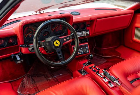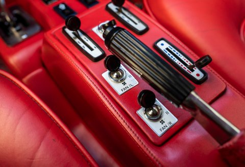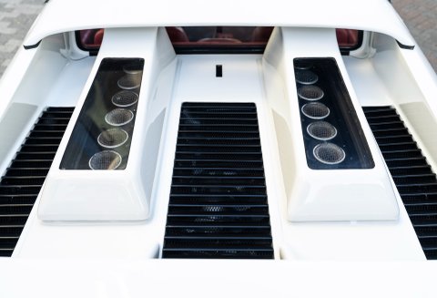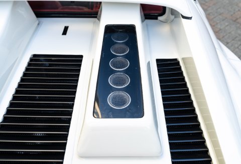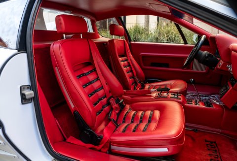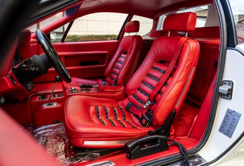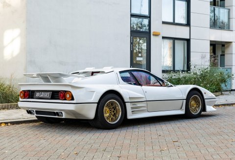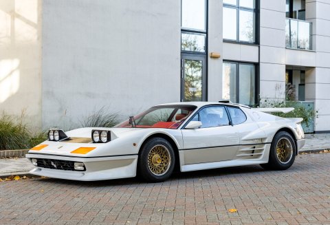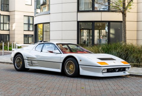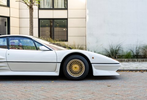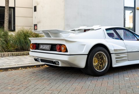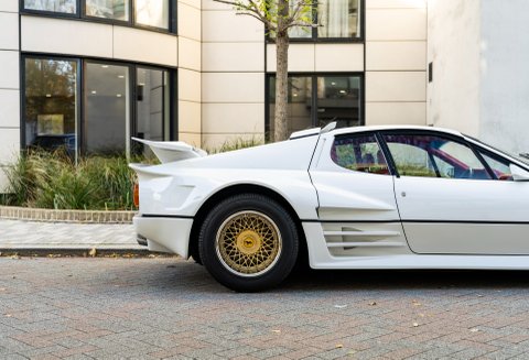 Our flamboyant 512BB 'Koenig Special' stands out in a very 80's specification of White with Red interior with a set of 15-inch alloy wheels with gold faces and polished barrels. This example started life as a standard German-market 512 BB until it reached its second owner in 1982, who was reportedly well known to Koenig Specials and commissioned a complete rebuild of the car with the full package of upgrades that Koenig offered in 1983. This package includes;