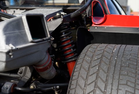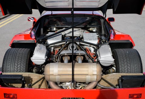 The F40 s engine was based on the 288 GTO s twin-turbocharged V-8, but it was bored to displace nearly three litres. Following some additional tuning, the engine could produce 478 brake horsepower, making it the most powerful road-going Ferrari to date. This engine, combined with its lightweight nature, made the F40 s performance figures just as incredible as its top speed. A sprint from 0 to 60 could take just 3.8 seconds, and the car could be powered onwards to a quarter-mile time in 11.8 seconds. Braking was equally impressive, and the F40 could bring itself to a stop from 60 mph in just 119 feet, if necessary.