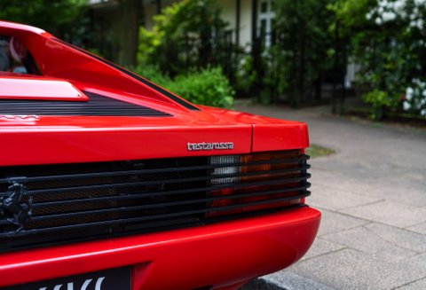 Rivalling Lamborghini’s Countach for presence, the Pininfarina-designed Testarossa succeeded brilliantly, the gill slats feeding air to its side-mounted radiators being one of the modern era’s most instantly recognisable – and copied – styling devices. A larger car than the 512BB – the increase in width being necessary to accommodate wider tyres – the Testarossa managed the trick of combining high downforce with a low coefficient of drag, its graceful body being notable for the absence of extraneous spoilers and other such devices. Despite the increase in size over the 512BB, the Testarossa was lighter than its predecessor, the body – its steel doors and roof excepted – being, somewhat unusually for a production Ferrari, of aluminium. Luxury touches in the well-equipped cabin included air conditioning, electrically adjustable seats, tilting steering wheel and plentiful leather. Unlike some of its rivals, the Testarossa possessed light controls and was relatively easy to drive, factors which, allied to its outstanding performance and stunning looks, contributed to an instant and sustained high level of demand.