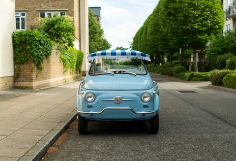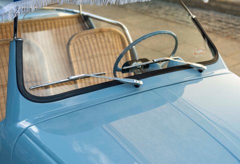 Our beautiful little Fiat Jolly recreation is a Fiat 500 that has been fully restored to Jolly specifications having used an original Ghia 500 Jolly as a reference. The entire body of the Fiat 500 saloon was completely stripped to bare metal, restored, re-worked and repainted by craftsmen in Italy. Finished to an extremely high standard and painted beautifully in Pastel Blue with bright Chrome details and wicker seating. Complemented by Chrome wheel trims with White-wall tyres, this iconic little classic always attracts admiring envious onlookers. The drivability of the car is equally as pleasurable, gear changes are smooth, allowing for easy City driving.