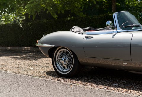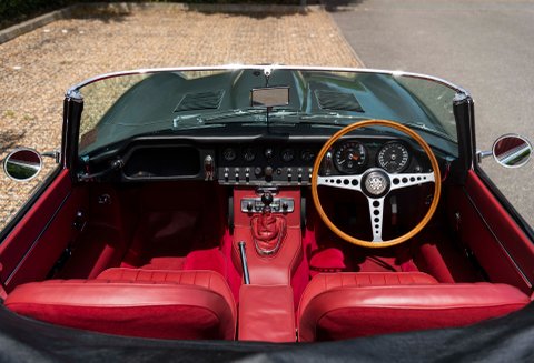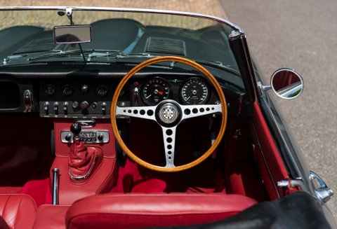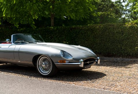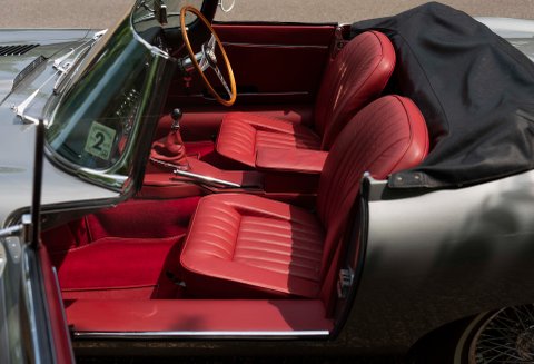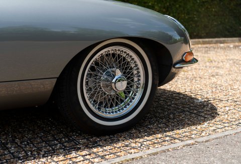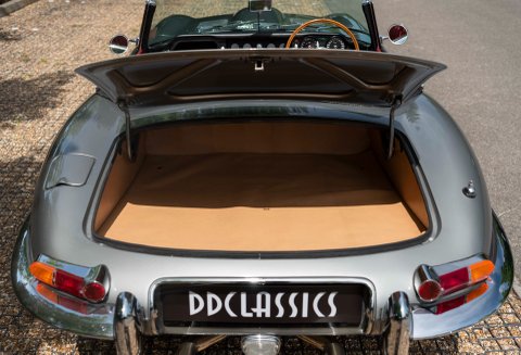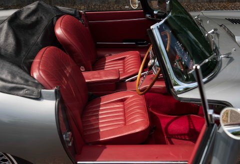 Finished in one of the best colour combinations of Opalescent Silver Grey coachwork with Scarlet Red hide and matching Red carpets. Gleaming chrome wire wheels with two ear spinners and white wall tyres which enhance the appearance, Grey seat belts trimmed in classic webbing and chrome fittings give the car an air of sophistication and added safety.