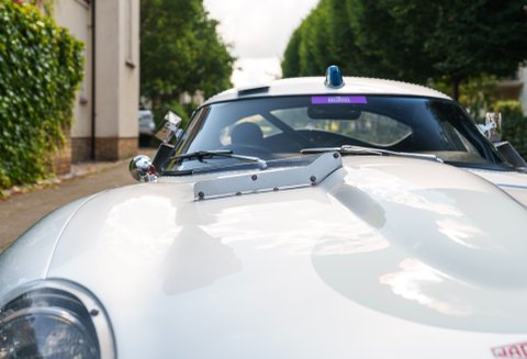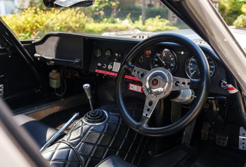 The front and rear suspension are fully adjustable, whilst the FIA-approved ATL fuel cell in aluminium casing, the Monza-style fuel filler, the braised fuel lines, and the large diameter front and rear brake discs with multi pot callipers make the E-Type highly usable on the track. As one might expect from this no-comprise vehicle, the interior has been finished to the highest standard, and it includes Smiths gauges, a Moto-Lita steering wheel, semi-reclined bucket seats that were patterned off the original car, trimmed Connolly hide, four-point harnesses with quick release, and a carpeted floor, with quilted leather covering the transmission tunnel and rear bulkhead.