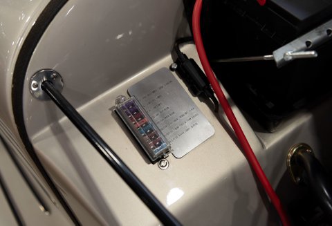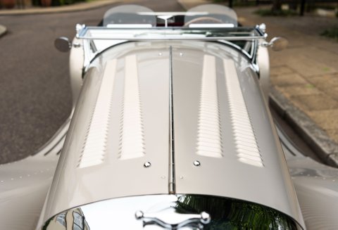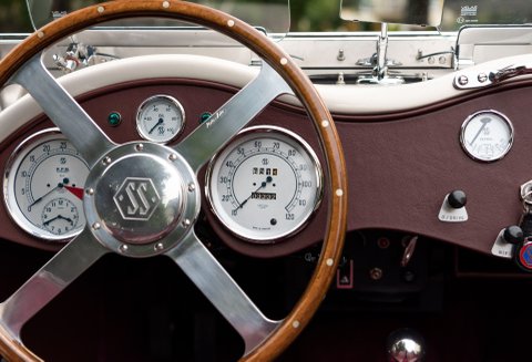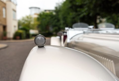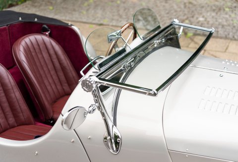 The attention to detail is to the finest standard and a credit to the chaps at Suffolk Sportscars who built the car. Inside the cockpit the seats are trimmed with period pleats, Lucas SS instruments light up the dashboard and even fuel tap has been added for detail. 4 spoke polished Moto Lita steering wheel and aero screens propel you back to the 1930’s, ‘chocks away! The road wheels are coloured to match the coachwork and fitted with Blockley road tyres and SS embossed two ear spinners. The exterior light fittings are all Lucas and period and the giant ‘King of the Road’ driving lights stand proudly on bow.