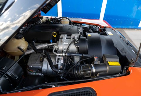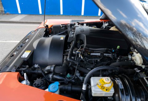 Finished in Phoenix Orange coachwork with contrasting gloss black bonnet and roof. The cockpit benefits the fitment of premium seats with Windsor leather upholstery, perforated leather inserts and contrast stitching and Alcantara headlining that all add’s the panache of luxury motoring. The luxury look is finished off by the leather-trimmed gear knob, handbrake lever and bright aluminium interior trim and Windsor leather hand-stitched top and lower role.
