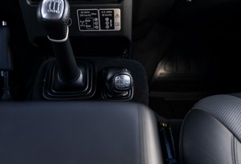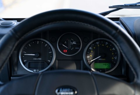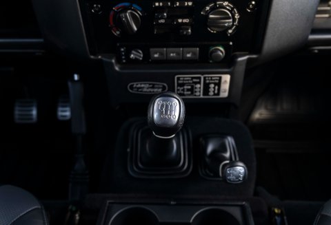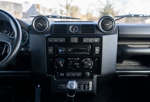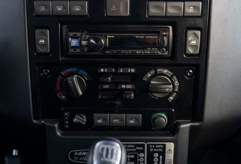 The JE/Startech Steering wheel is a couple of inches smaller than the standard Land Rover rubber steering wheel. It is trimmed in black leather, with a black/silver Land Rover logo at the centre. The advantage with this steering wheel is that the smaller size allows yours hands to be slightly closer together which effectively gives you a bit more elbow room between the wheel and the door. It is well-shaped and comfortable to hold.
