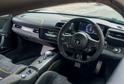 The MC20 marked Maseratiβs return to producing a true mid-engined supercar, built around a carbon fibre monocoque and powered by the 3.0-litre twin-turbo βNettunoβ V6. Producing 621bhp and paired with an 8-speed dual-clutch transmission, it delivers 0β62mph in under 3 seconds and a top speed in excess of 200mph. Lightweight construction, rear-wheel drive and an electronically controlled limited-slip differential give the car a focused but usable driving experience, while still retaining everyday comfort.