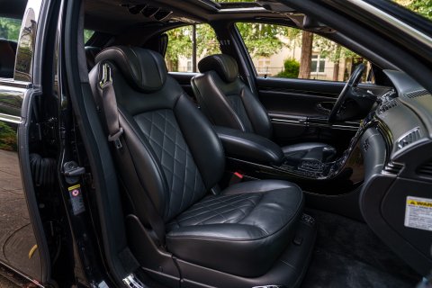 Finished in striking Baltic Black non-metallic paintwork, the exterior of the Maybach 57 S Zeppelin exudes an aura of understated elegance and timeless style. Its sleek lines and imposing presence command attention on any road, while the iconic Maybach grille adds a touch of grandeur that is unmistakable. The understated yet bold colour enhances the car’s graceful silhouette, making it a true standout in any setting.