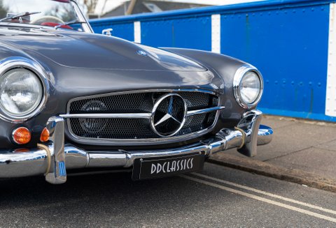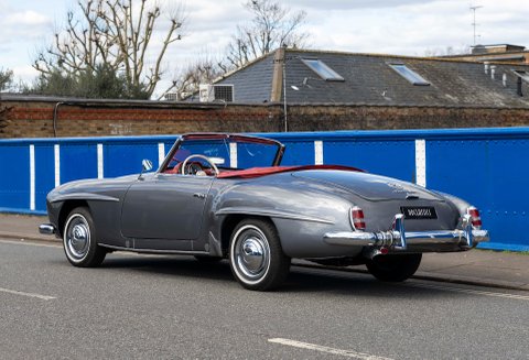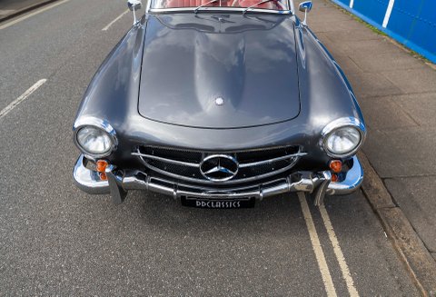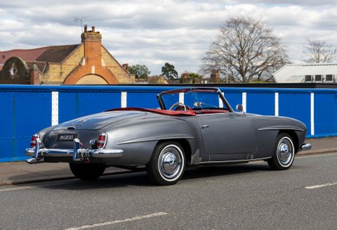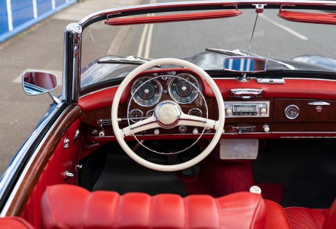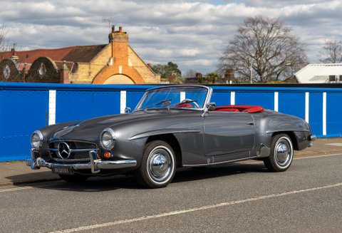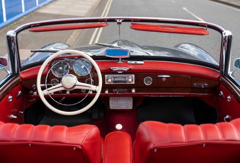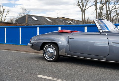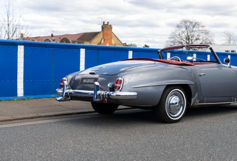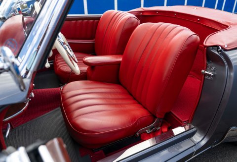 Today we present to you a beautiful example of a 190SL in Gunmetal Grey with Red interior which has been freshly prepared for use by Classic Sport Leicht.