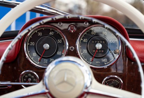 The 190 SL was best suited for touring, as it featured copious amounts of luggage space, despite having a convertible top. Top-down cruising is effortless, and both driver and passenger could arrive at the final destination ready for whatever was in store for them after a day-long drive.