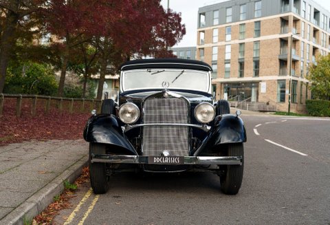 This particular example, first registered in 1935, is one of the desirable long wheelbase versions introduced from 1934. Under the bonnet lies Mercedes’ smooth 6-cylinder 2,089 cc engine, producing around 40 horsepower — enough to deliver composed, effortless performance that made the model a favourite among discerning drivers of the period. The side-opening bonnet panels and detailed coachwork speak to a time when craftsmanship and design were inseparable.