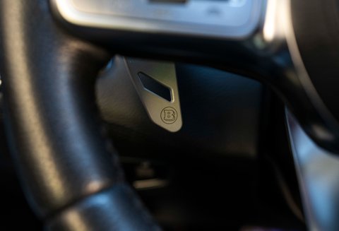 The sporty and luxurious appearance of the BRABUS 800 continues in the interior. Each vehicle is fitted with a handmade BRABUS fine leather interior tailored to your personal preferences. Large parts of the interior of this vehicle are covered with especially soft and breathable classy black BRABUS fine leather.