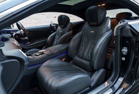 Inside, the S63 boasts a luxurious suite of comfort features, including the AIR-BALANCE Package and Warmth Comfort Package, which introduce air purification, fragrance diffusion, and additional heating elements. The Panoramic Roof with MAGIC SKY CONTROL provides an open-air feel with adjustable tinting, while the exclusive package includes Illuminated Door Sill Panels with “Mercedes-Benz” Insignia, and Ambient Lighting Premium, creating an upscale and serene environment.