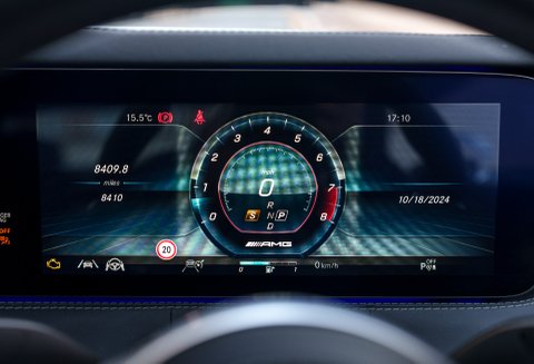 Its Emerald Black Metallic finish exudes sophistication, perfectly complemented by the interior’s black Nappa leather and premium Designo Black DINAMICA microfiber headliner. The exterior is further enhanced by the AMG Night Package and Red-Painted Brake Callipers, adding a bold, dynamic edge. Adding to its presence, 20-Inch AMG 5-Twin-Spoke Alloy Wheels and Wider Wheel Arches complete the AMG bodystyling, ensuring it stands out on the road.