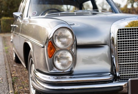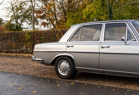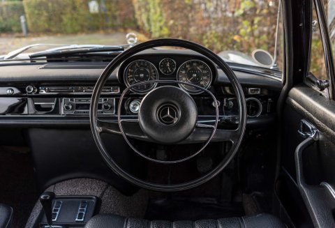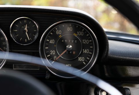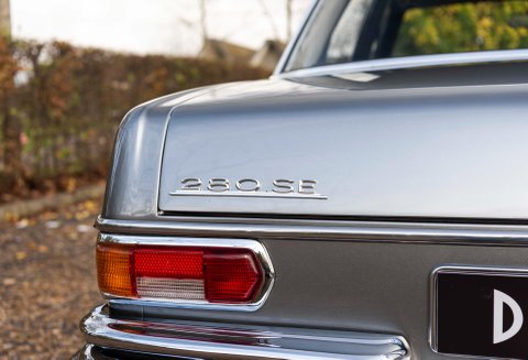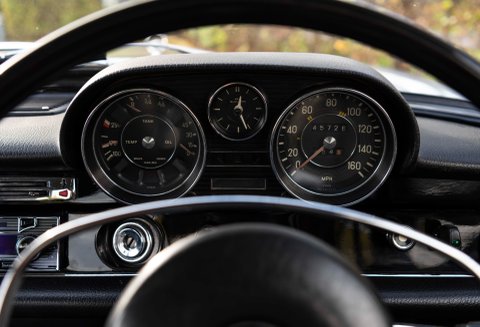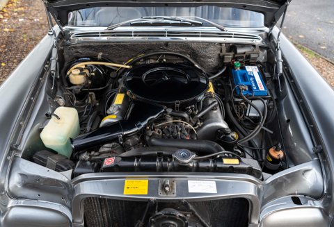 The last two owners of the car had undertaken significant works to the car which total the value of the vehicle today. In 2020 the car went to Mercedes-Benz Brooklands which is parallel to the car going back to Stuttgart and then to a Ferrari specialist. It was during this ownership that the 3.5 coachwork was stripped back from its original colour of 457H and changed to Metallic Silver – this was no small exercise; the engine was removed along with all ancillaries. All bright work was sent away for chroming, doors – bonnet & boot lid and finally both front and rear windscreens. Not only did the coachwork under go works, the wood set was removed and sent away to be re-veneered in Black Piano, this fitted against the trim looks sensational. Steel road wheels were refurbished and new Michelin tyres were fitted. New filters, drive belts, door seals, fan belt, boot seal, brake lines, wheel bearing kit, voltage regulator kit, lower and upper swivel kit were also a few of the items that were gained.