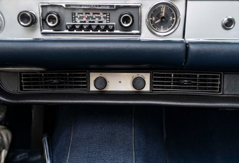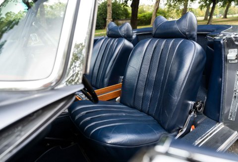Presented in Gunmetal Grey coachwork with contrasting Dark Blue hide, carpets and soft top both trimmed to match. White wall tyres fitted to the wheels and the highly polished wheel trims are to mirror finish. Equipped with 3rd rear fold out seat, headrest to the front seats and the added safety of seat belts. Instalment of a Becker Mexico period radio finishes off this iconic cabin. All chrome work is gleaming and finishes off the look of this timeless classic.