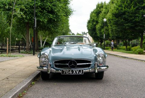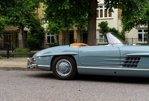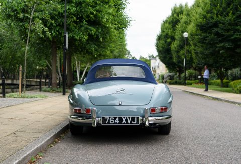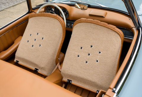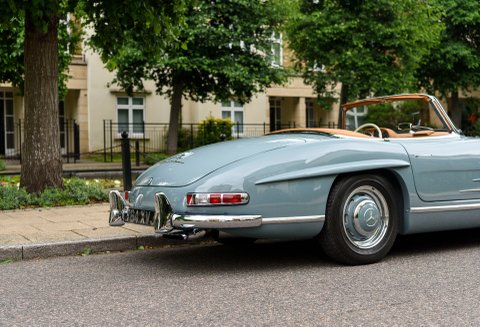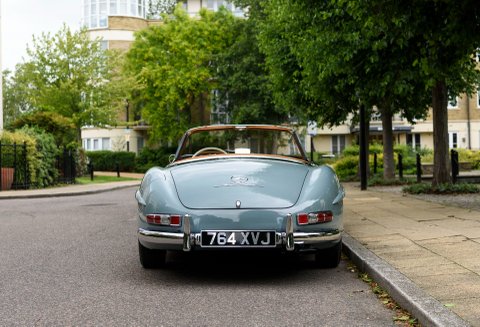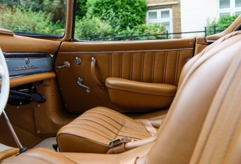 Finished in its gorgeous original colour combination of Mercedes Grey-Blue coachwork with Cognac hide with French Blue mohair soft top. The quality of the restoration work carried out is to the highest of standards with each step of the process personally overseen by our managing Director Daniel Donovan. Every detail is correct throughout the car from the number of perforations in the seats to the period decals in the engine compartment – viewing will not disappoint.