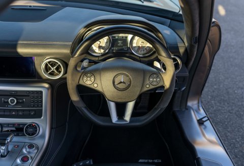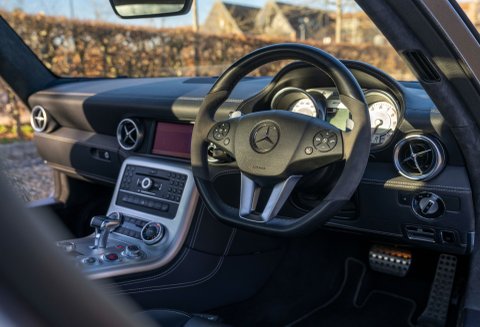 Our Mercedes SLS has completed a mere 33,700 miles and is finished beautifully in Grey, complemented by a contrasting Anthracite Black leather interior. Inside, the car is equally luxurious as it is practical. Both the driver and passenger seats show little sign of wear and the Anthracite gearbox tunnel facia and Alcantara headlining remains as new. The centre console is finished stylishly in Wood Ash Silver.