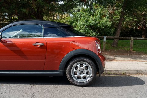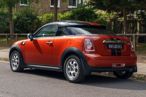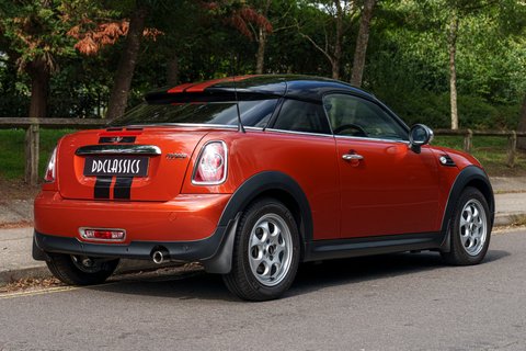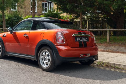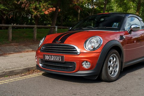 This outstanding one-owner Mini Cooper Coupé, finished in striking Spice Orange Metallic with a Cosmos Black cloth interior, has covered a mere 5,800 miles from new. Optional extras include;