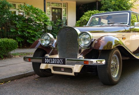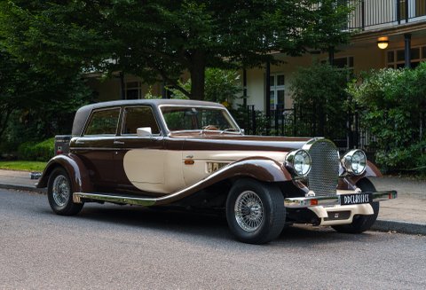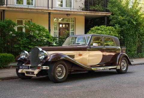Inside, the De Ville had a modern cockpit despite the pre-war styling of the exterior. It was equipped with Jaguar suspension, power steering, and automatic transmission, making it easy to drive and relatively quick. The speed was limited, however, by poor aerodynamics. Due to the De Ville’s stylish exterior and luxurious interior, often including TV Sets and drinks bars, they appealed to the rich and famous of the time.Â