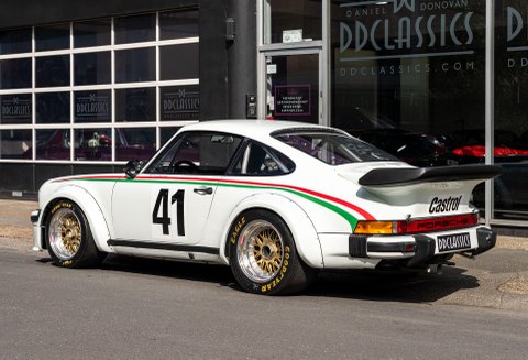 - Porscheβs first-ever production-based turbocharged racing car