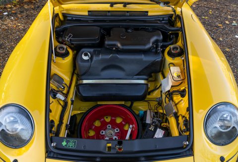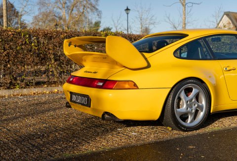 Finished in Speed Yellow with very rare GT2 RS body-kit including boot spoiler, this rare car was imported from Japan and UK registered in 2018. It's many extras include power steering, electric windows, electric mirrors, remote central locking, climate control, air -conditioning, CD player, tiptronic gearbox, 18" turbo alloys, red brake callipers and stainless exhaust. In May 2021 it was serviced at Porsche Dealers East London at 63,278 kilometres. Its history file includes Japanese service documents and handbook, DVLA documents and recent UK receipts. The odometer records 63,761 kilometres (39,620 miles). Two owners since UK import including the vendor since 2021. Tracker and alarm.