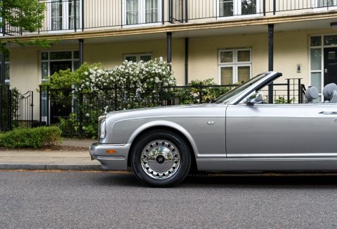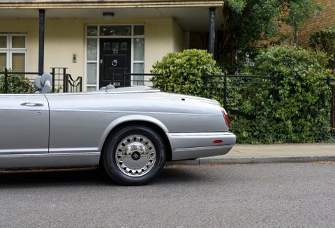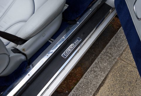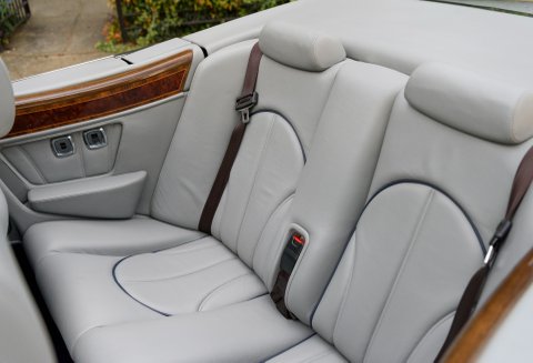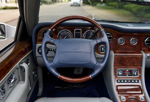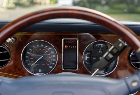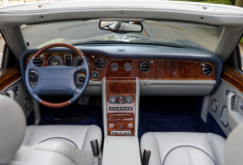 Corniche Vs rarely come in such a stunning specification as the car we are proud to present you today, finished in Silver Pearl over Stratos Grey leather interior with French Navy Blue Connolly leather piping, Steering Wheel, Dashboard and Dark Blue carpets in the cockpit and in the boot, as well as Burr Walnut veneers with inlays and Walnut trims on the steering wheel. Also featuring a Navy Blue hood and the 17inch Chrome wheels exclusive to the Corniche V, making one of the most elegant specifications we have ever seen on this rare model. It has also importantly covered a mere 16,000 miles from new, making it one of the lowest mileage examples in the world. The car comes with service records, original handbooks and tools.