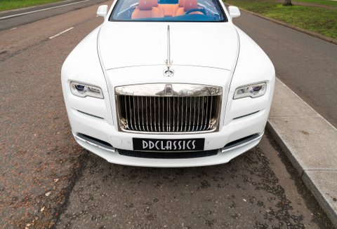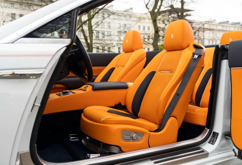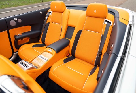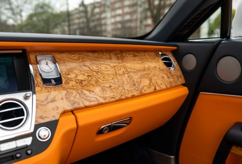 Our amazing 2017 Rolls-Royce Dawn is finished in Arctic White with a beautiful bespoke Mandarin Orange/Navy Blue leather and Tuscan Ash Veneer interior. With just 7,300 miles covered from new this car is presented in excellent condition today.