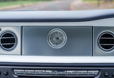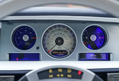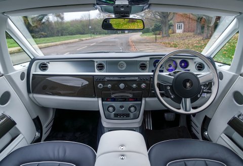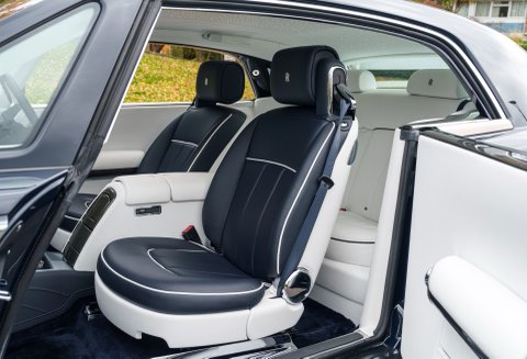 Finished in stunning Zenith Midnight Blue Pearlescent with Navy Blue hide on the front seats and Arctic White hide on the rear seats, the cabin is complemented by Starlight headlining and carbon veneer, giving the car a subtle sense of occasion without being overstated.